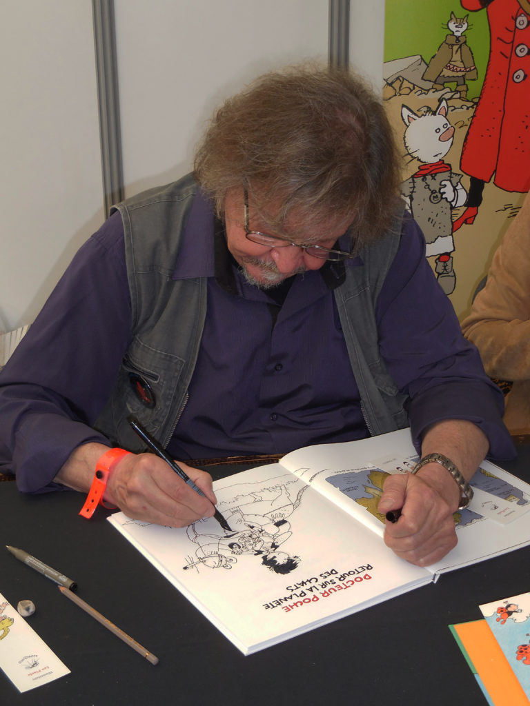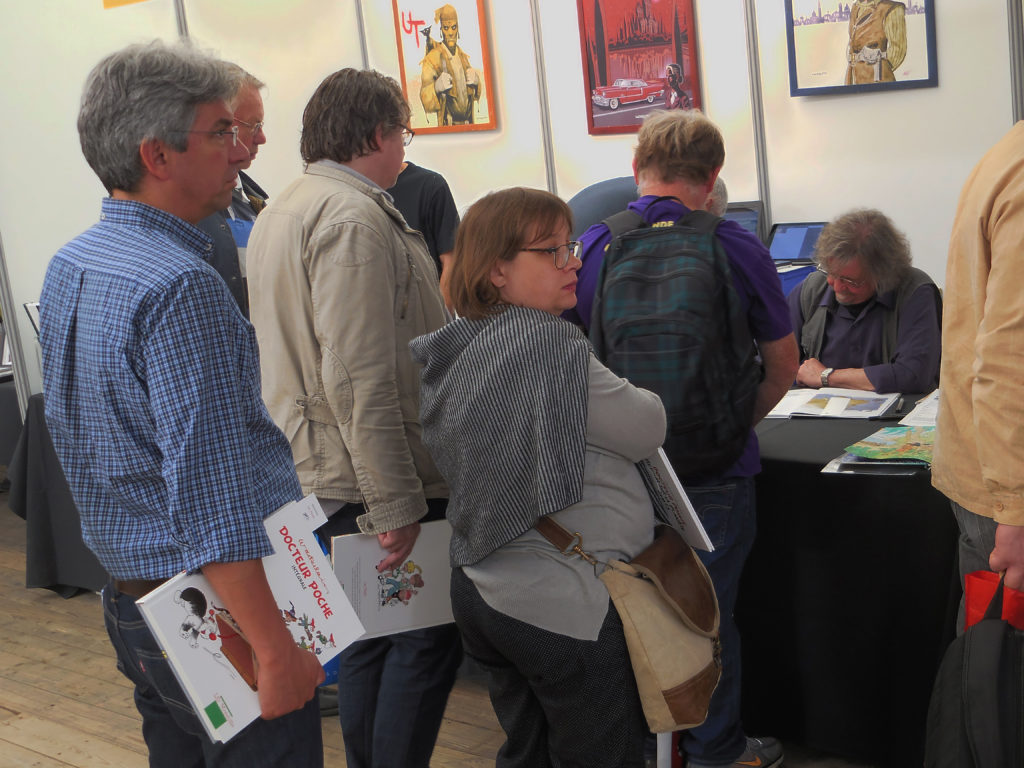 Au stand des éditions Mosquito, Marc Wasterlain en dédicace au côté d’Oriana qui, comme à son habitude, fait la promotion notre asbl « L’Univers de Marc Wasterlain »…